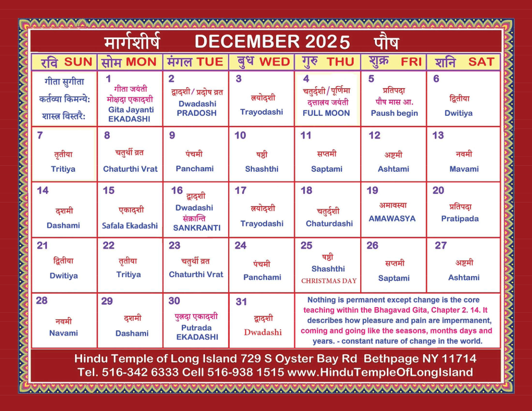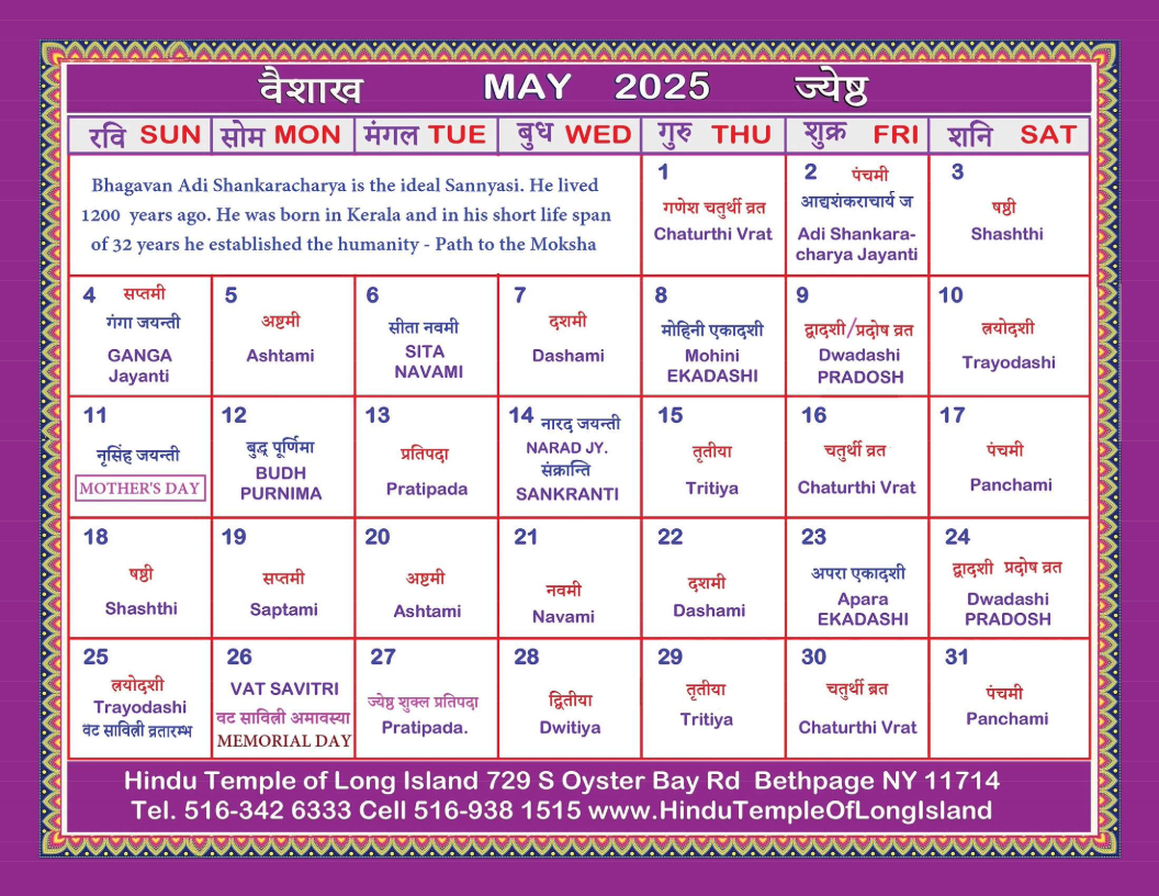 2025 Hindu Calendar